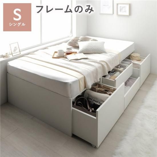 商品名:ヘッドレス チェスト ベッド 通常丈シングル ホワイト ベッドフレームのみ 大容量