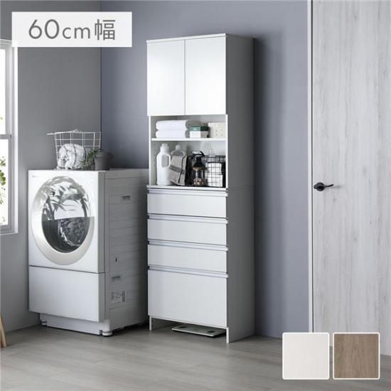 商品名:ランドリーチェスト 幅60cm ホワイト 汚れに強い 薄型 スリム 扉付き 隙間収納 ラック 洗面所収納 サニタリーチェスト