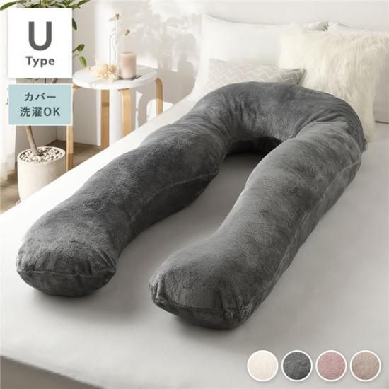 商品名:抱き枕 もちふわ 抱かれ枕 Uタイプ グレー 140×70cm フランネル生地 カバ―洗濯可能 寝具 クッション