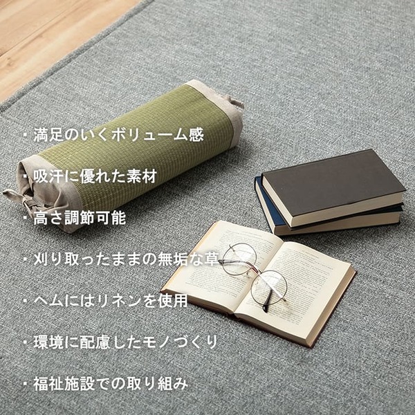 商品名:サスティナブル 自然素材 国産 い草 無垢 枕 ピロー 角枕 消臭 蒸れにくい ナチュラル 約35×15cm
