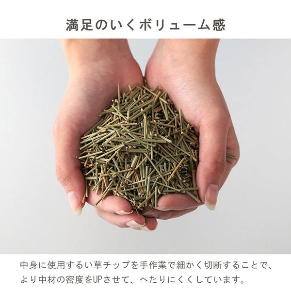 ■中身に使うい草チップは機械で切断すると長くなってへたりやすいですが、人の手で細かく裁断することによりへたりにくくなっています。