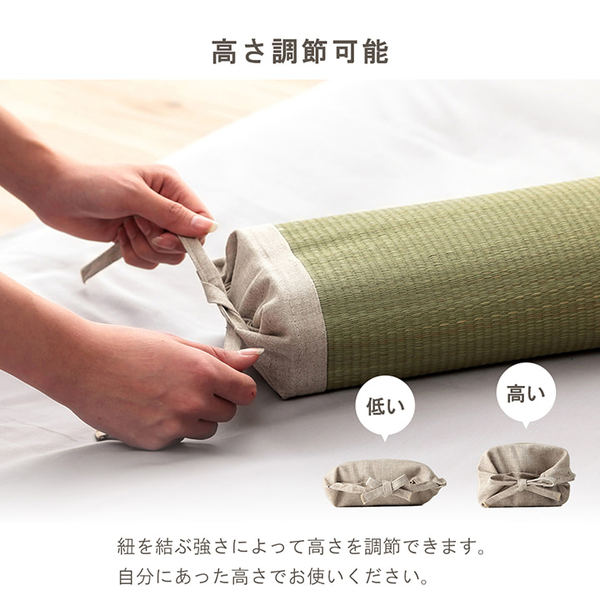 ■い草をたっぷり詰め込み、人それぞれの好みの高さに調整が可能ない草の枕です。