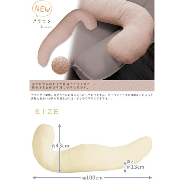 商品名:抱き枕/寝具 【ブラウン】 約43×100×厚さ約13cm 綿100%パイル地 洗える カバー付き 〔リビング ソファー〕