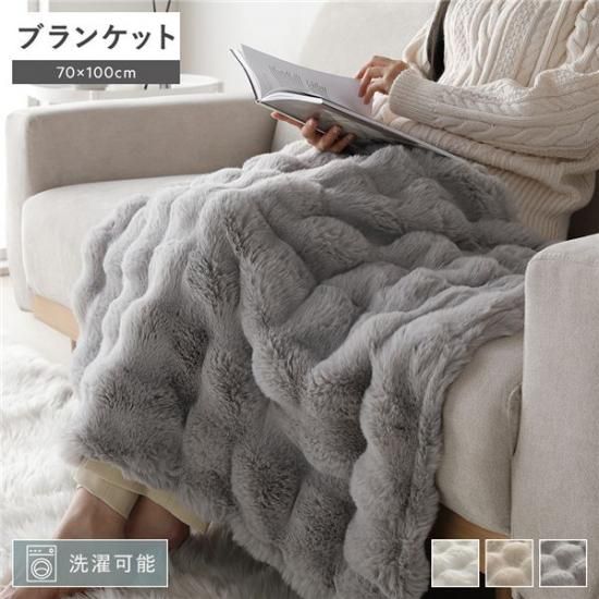 商品名:ポコポコふんわり ブランケット 約70×100cm グレー 2枚合わせ 洗える ひざ掛け 膝掛け 毛布 ラビットファー調 リビング 寝具