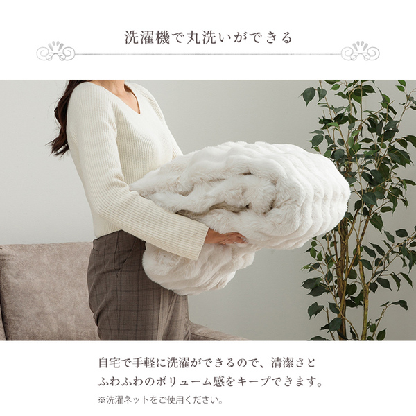 もこもことしたシルエットが可愛い、ラビットファー調の2枚合わせ毛布です。