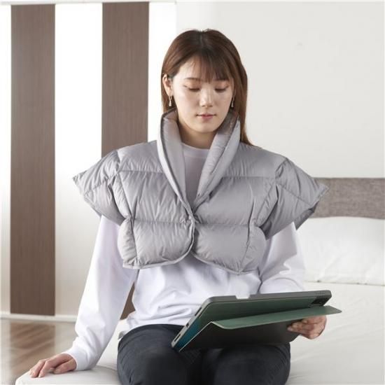 首元、肩回りをしっかり温めてくれる上質ダウンの肩当て。お部屋のくつろぎ時間や、就寝時のご使用であったか快適睡眠、朝までぐっすり。寒がりの方には必須アイテムです。