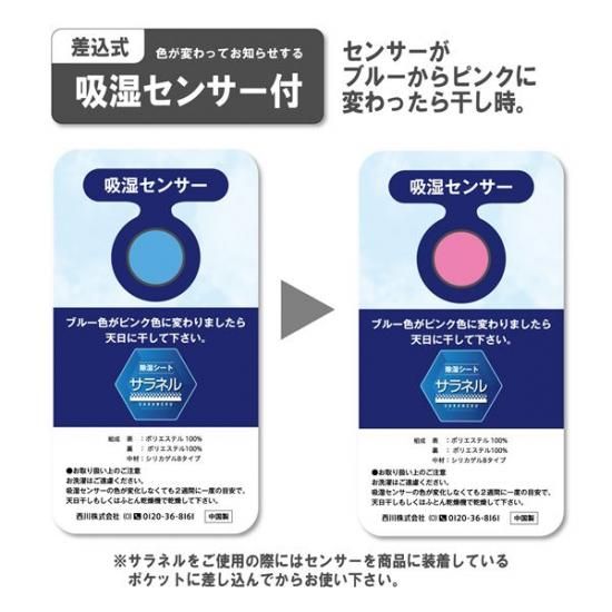 【西川】 ベッド・布団用 除湿シート 【セミダブル】 約110×180cm シリカゲル 吸湿センサー付 サラネル 〔ベッドルーム 寝室〕【代引不可】
