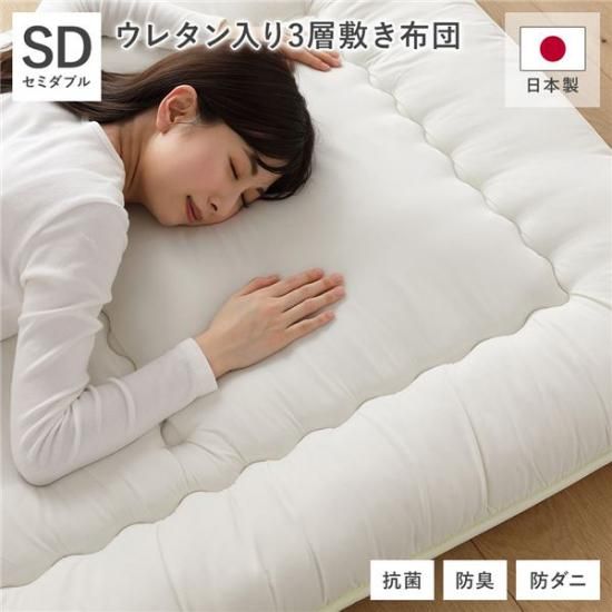 商品名:敷布団 単品 セミダブル 約120×210cm アイボリー 日本製 抗菌 防臭 防ダニ ウレタン入り3層構造 布団 寝具 ベッドルーム 寝室