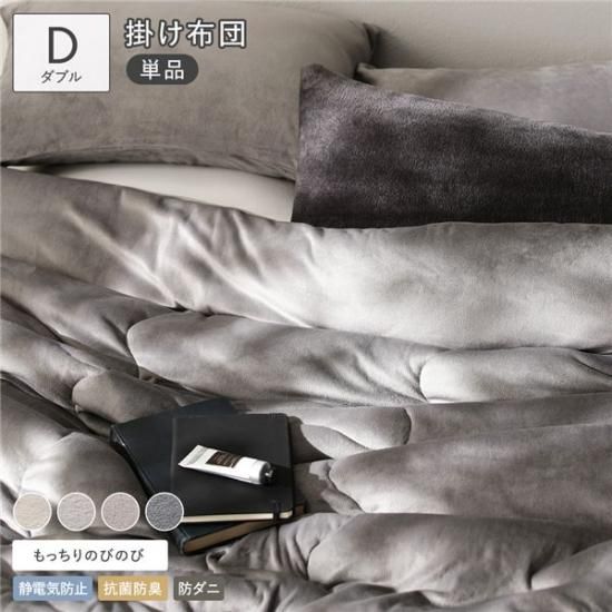 商品名:のびのび 暖かベロア もっちり 掛け布団 単品 ダブル チャコールグレー カバー不要 掛布団