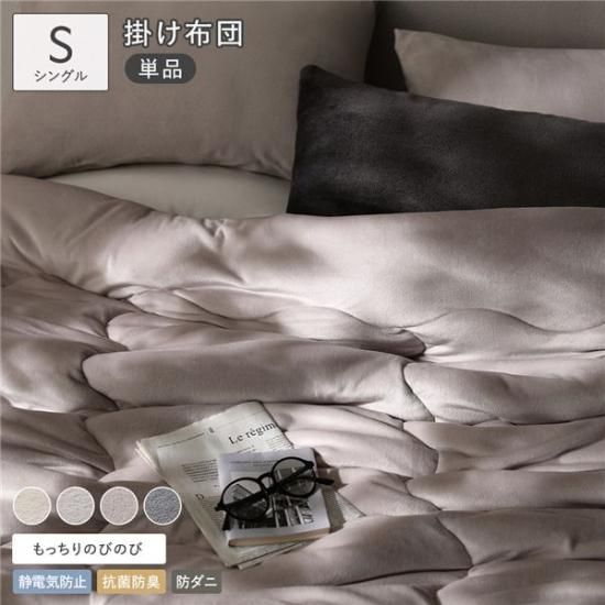 商品名:のびのび 暖かベロア もっちり 掛け布団 単品 シングル ライトグレー カバー不要 掛布団