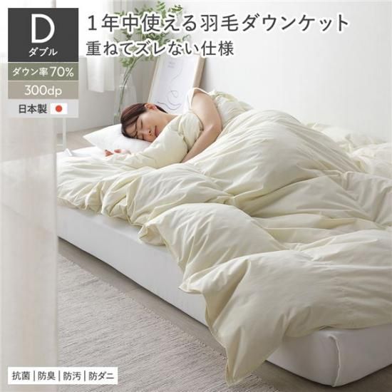 商品名:羽毛 ダウンケット 掛け布団 ダブル アイボリー ダウン率70% ダウンパワー300dp 日本製 オールシーズン 抗菌 防臭 防ダニ