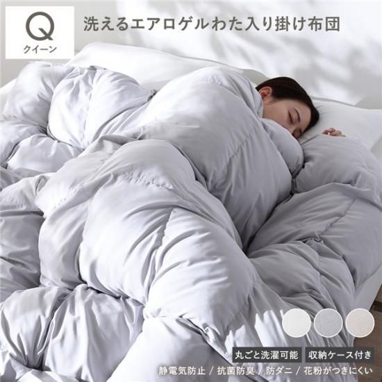 商品名:エアロゲル 合繊 掛け布団 クイーン ライトグレー 洗える 抗菌 防臭 静電気防止 防ダニ 収納ケース付き 掛布団 寝具