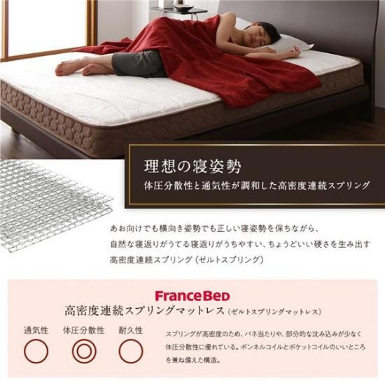 商品名:フランスベッド マットレス 国産 高密度 連続スプリング 快眠 抗菌 防臭 防ダニ ニット生地 通気性 体圧分散 2年保証 コンパクト 圧縮 梱包 シングルサイズ
