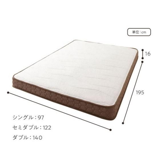 セミダブル:(約)幅122cm×長さ195×高さ16cm