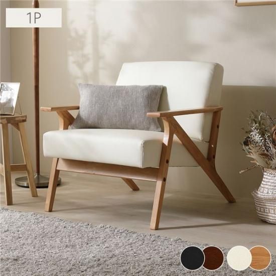 商品名:木肘 合皮 ソファ 1人掛け クリームアイボリー ナチュラル脚 天然木 合成皮革 脚付き 肘付 ソファー リビング ダイニング インテリア家具