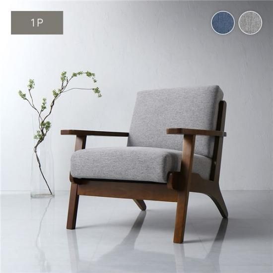 商品名:ソファ 1人掛け グレー 肘付き 天然木 木肘 木枠 北欧風 ソファー デザイナーズ 組立品 インテリア家具