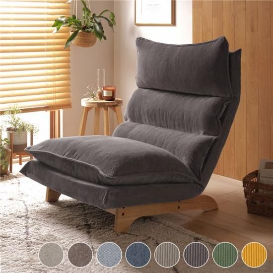 商品名:ローソファー 約幅73cm 1人掛け チャコールグレー 木製脚付 スチール コーデュロイ生地 日本製 ダブルリクライニングソファ