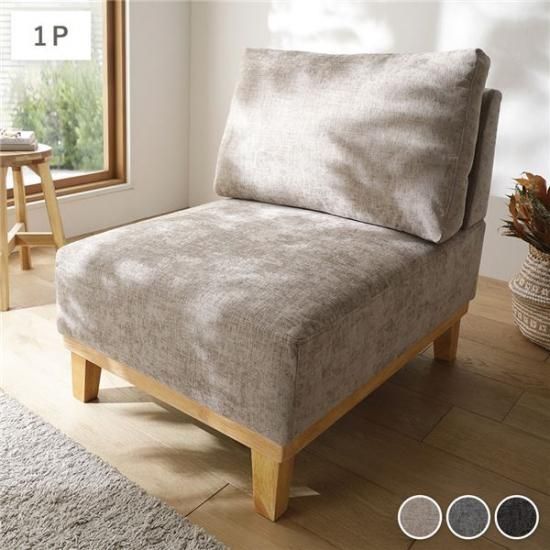 商品名:アームレス ソファ 1人掛け ソファー 単品 グレージュ 洗える カバー付 天然木 ローソファ ポケットコイル