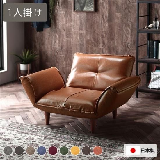商品名:リクライニングソファ 1人掛 ヴィンテージPVC生地 ヴィンテージキャメル 脚部 ブラウン 日本製 ローソファ