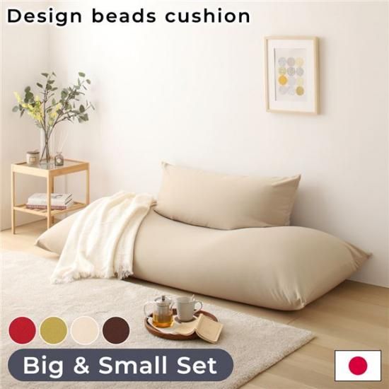 商品名:ビーズクッション ソファ ベージュ スモール ビッグ セット 日本製 リラックス 軽量 ゆったり ジャンボ クッション 一人掛け スムース 生地
