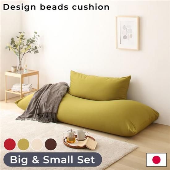商品名:ビーズクッション ソファ グリーン スモール ビッグ セット 日本製 リラックス 軽量 ゆったり ジャンボ クッション 一人掛け スムース 生地