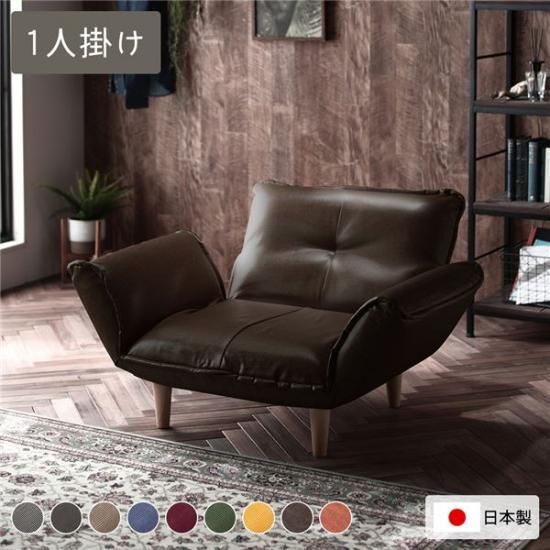 商品名:リクライニングソファ 1人掛 ヴィンテージPVC生地 ヴィンテージダークブラウン 脚部 ナチュラル 日本製 ローソファ
