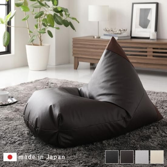 商品名:ビーズクッション ソファ ブラウン 三角 合皮 レザー ファブリック素材 軽量 取っ手付き 日本製