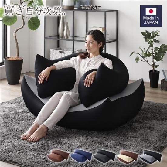 商品名:ビーズクッション 特大&抱き枕 セット ライトグレー×ブラック 日本製 吸水速乾 体圧分散 軽量 ソファー 抱きまくら