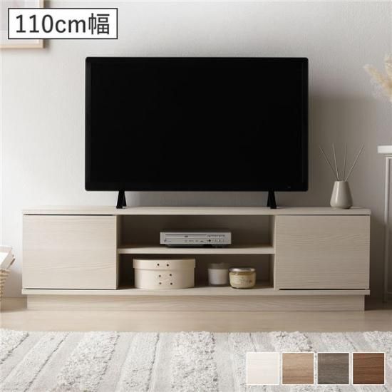 商品名:扉付き テレビ台 テレビボード 110cm幅 木目ホワイト 壁置きタイプ 収納力抜群 可動棚 コード穴付 ローボード リビング 組立品