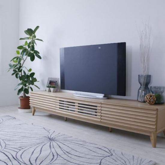 商品名:テレビ台 テレビボード 約幅203.5×奥行42.5×高さ38cm ナチュラル ルーバー 脚付き リビング ダイニング インテリア家具