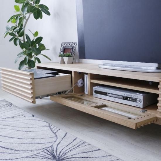 テレビ台 テレビボード 約幅203.5×奥行42.5×高さ38cm ナチュラル ルーバー 脚付き リビング ダイニング インテリア家具【代引不可】