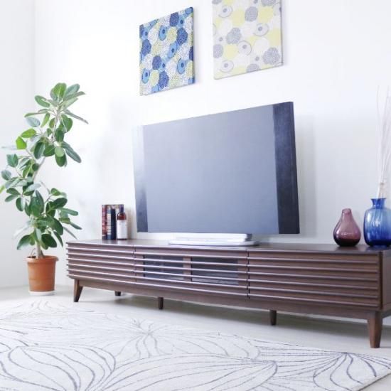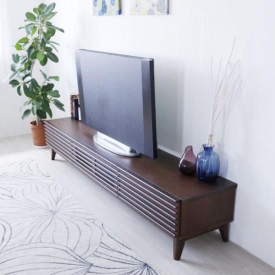 テレビ台 テレビボード 約幅203.5×奥行42.5×高さ38cm ブラウン ルーバー 脚付き リビング ダイニング インテリア家具【代引不可】