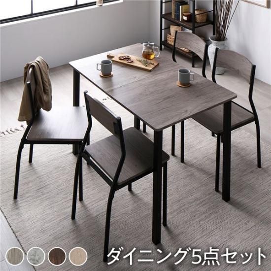 商品名:ダイニングセット 5点セット ダイニングテーブル 幅110cm グレージュ×ブラック ダイニングチェア シンプルタイプ 4脚付き