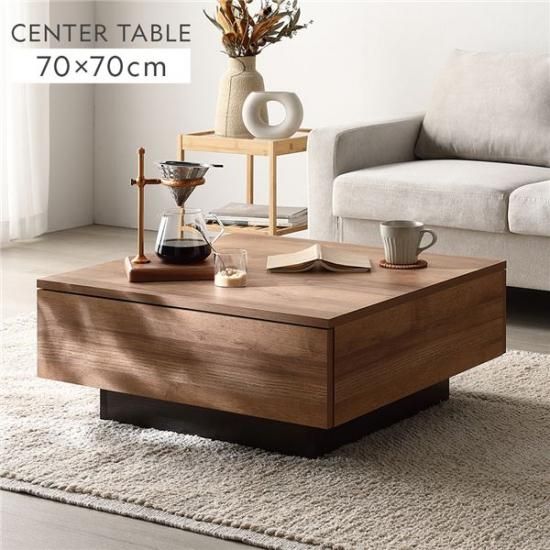 商品名:センターテーブル 正方形 約70×70cm シャビーオーク 引き出し 2杯付き ローテーブル リビング ダイニング インテリア家具