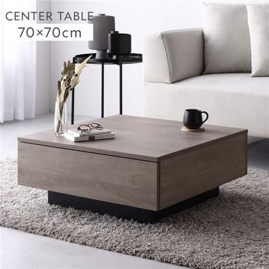商品名:センターテーブル 正方形 約70×70cm グレージュ 引き出し 2杯付き ローテーブル リビング ダイニング インテリア家具