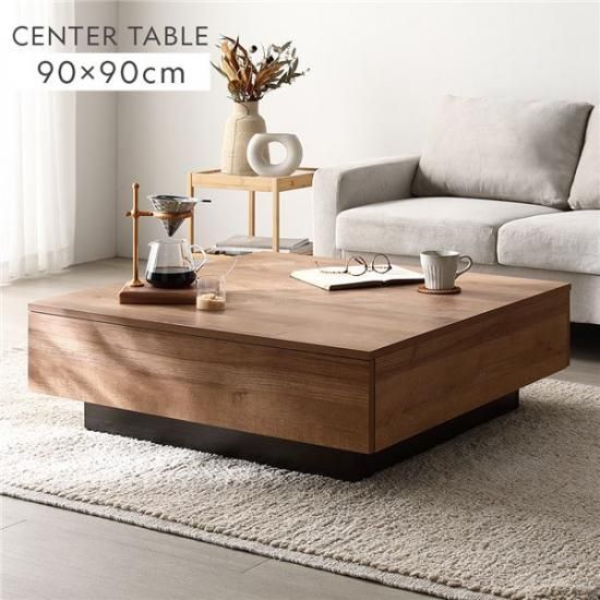 商品名:センターテーブル 正方形 約90×90cm シャビーオーク 引き出し 3杯付き ローテーブル リビング ダイニング インテリア家具