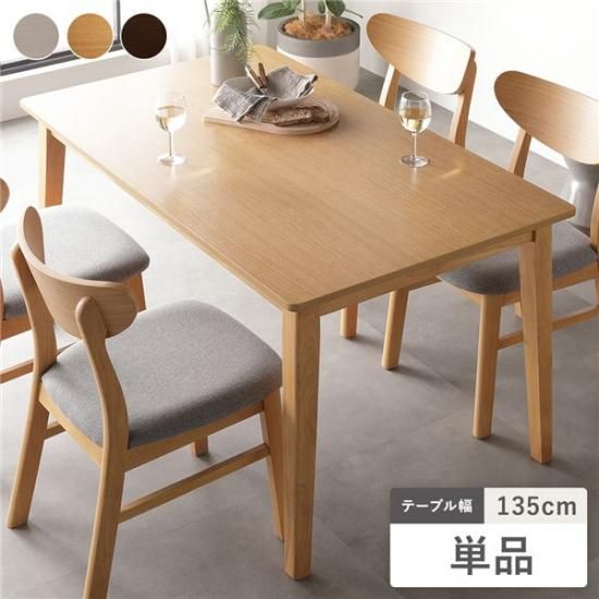 商品名:ダイニングテーブル 単品 幅135cm ナチュラル 天然木突板 木脚 お手入れ簡単 アジャスター付 食卓テーブル リビング ダイニング