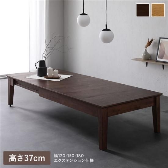 商品名:エクステンションテーブル 高さ37cm ウォルナットブラウン 約幅120〜180cm 天然木 伸長式 3段階 ローテーブル 組立品