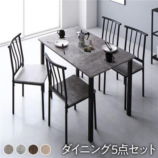 商品名:ダイニングセット 5点セット 〔テーブル 幅110cm チェア パイプタイプ 4脚 ストーン×ブラック〕 木製 スチール 4人掛け