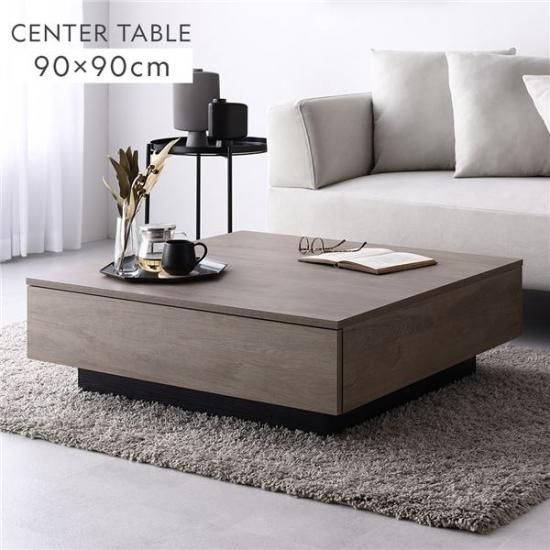 商品名:センターテーブル 正方形 約90×90cm グレージュ 引き出し 3杯付き ローテーブル リビング ダイニング インテリア家具