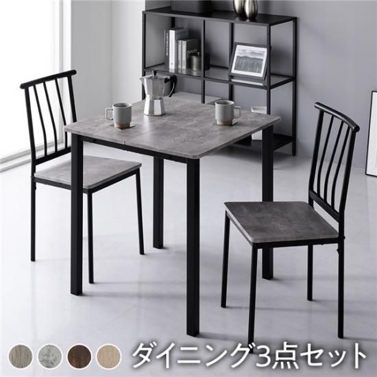 商品名:ダイニングセット 3点セット 〔テーブル 幅70cm チェア パイプタイプ 2脚 ストーン×ブラック〕 木製 スチール 2人掛け