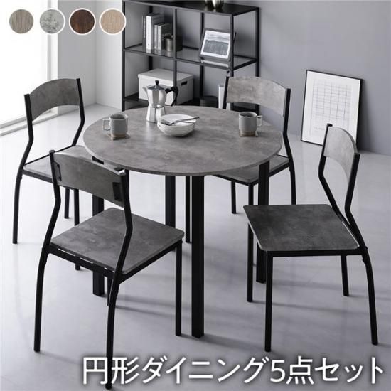商品名:ダイニングセット 5点セット ダイニングテーブル 幅90cm 円形 ストーン×ブラック ダイニングチェア シンプルタイプ 4脚付き