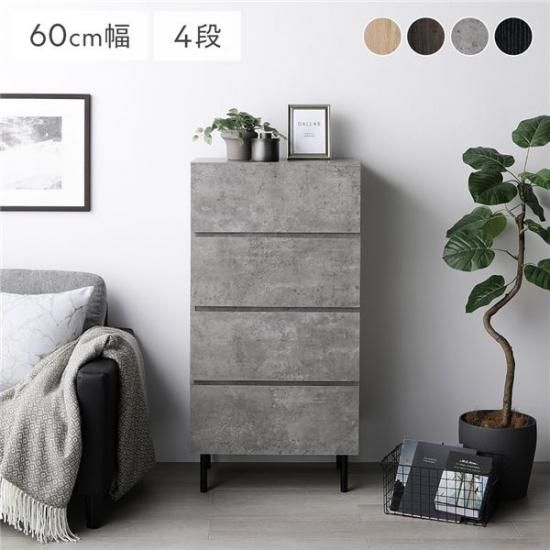 商品名:チェスト ワイド 4段 幅約60cm ストーングレー 大容量 収納 スチール脚 全段スライドレール付き 異素材MIX 組立品
