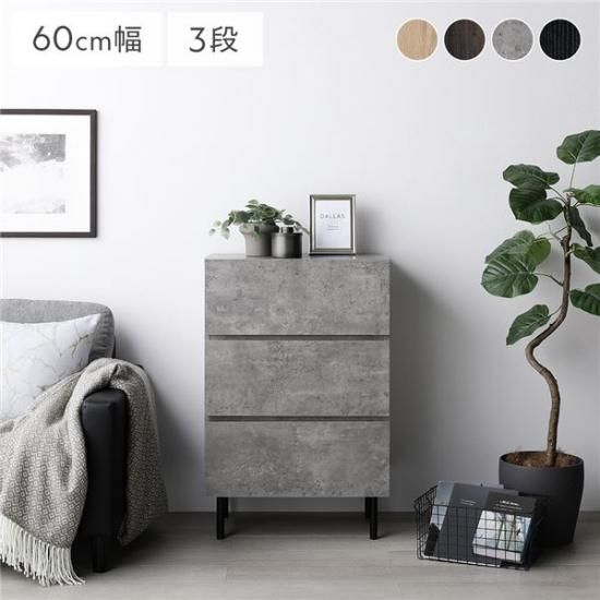 商品名:チェスト ワイド 3段 幅約60cm ストーングレー 大容量 収納 スチール脚 全段スライドレール付き 異素材MIX 組立品