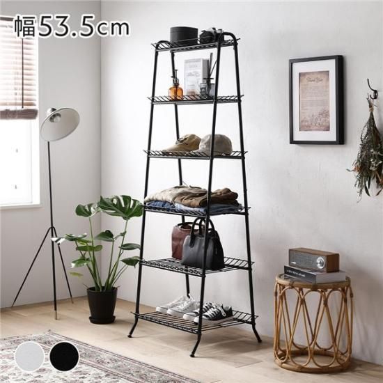 商品名:シェルフ ブラック 約幅53.5×奥行48×高さ156cm パイプ スチール レトロ調 オープンラック 収納ラック インテリア家具 組立品