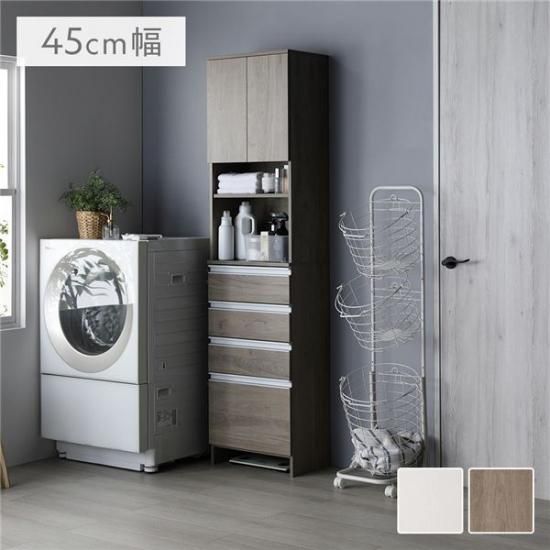 商品名:ランドリーチェスト 幅45cm グレージュ 汚れに強い 薄型 スリム 扉付き 隙間収納 ラック 洗面所収納 サニタリーチェスト