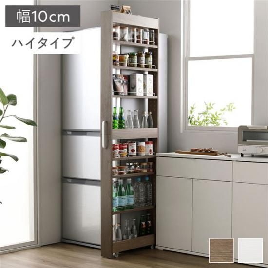 商品名:すき間 収納ラック ハイタイプ 幅10cm グレージュ キャスター 可動棚付き スリム キッチン収納 隙間収納 インテリア家具 組立品