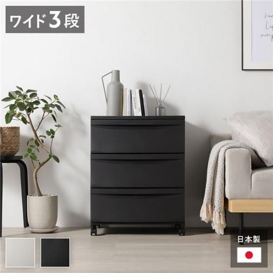 商品名:チェスト 収納棚 ワイド 3段 キャスタータイプ ダークグレー 日本製 プラスチック 引き出し収納 リビング収納 組立品