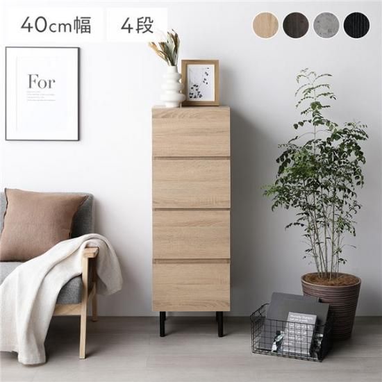 商品名:チェスト スリム 4段 幅約40cm ナチュラル 大容量 収納 スチール脚 全段スライドレール付き 異素材MIX 組立品