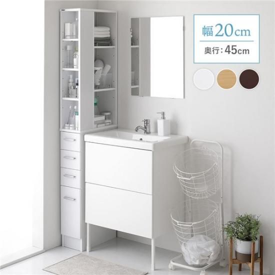 商品名:隙間収納ラック 幅20cm ホワイト キッチン収納 洗面所収納 多段チェストタイプ 収納棚 収納ラック オープン棚 引き出し スリム